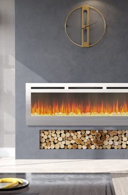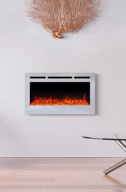 60 Inch Electric Fireplace Silver Recessed Fire With 12 LED Flame Colour |